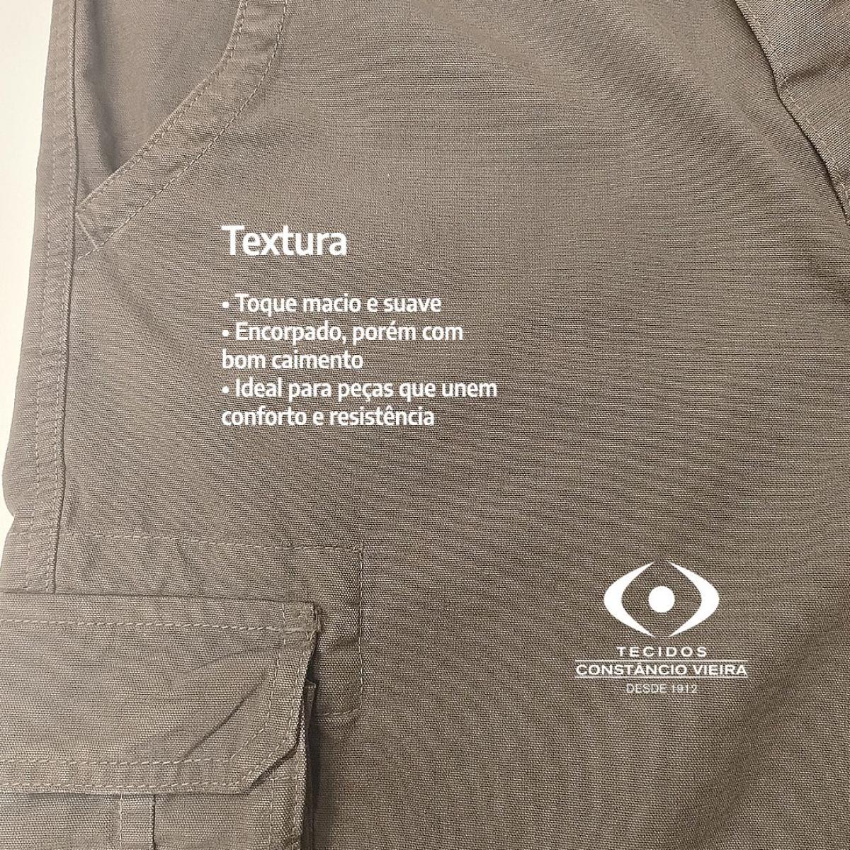 O tecido mantém o formato, não deforma facilmente e apresenta bom caimento.